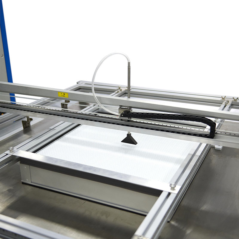 If 4 counters are configured downstream, a filter of 60 cm x 60 cm can be tested in 30 seconds, a filter of 120 cm x 120 cm can be tested in 120 seconds.
